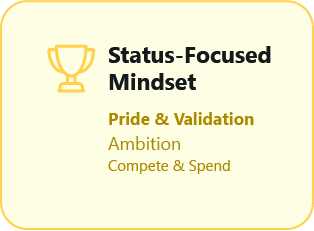 Ties self-worth to wealth, fueling ambition but risking burnout, debt, and constant comparison.